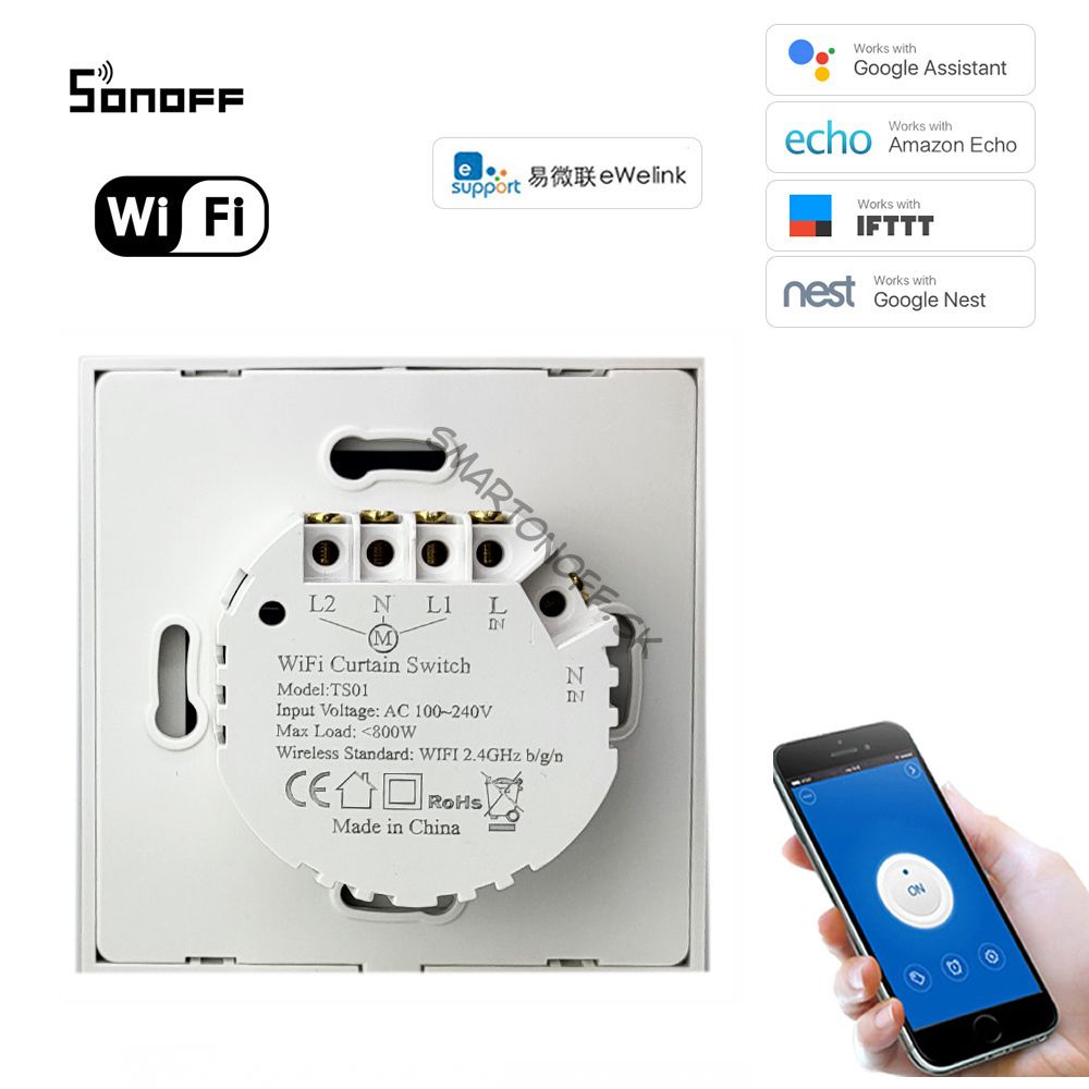 Wi-Fi + Bluetooth ovládač na rolety a žalúzie eWelink - Dotykový inteligentný spínač Wi-Fi + Bluetooth od SmartWise kompatibilný s aplikáciou eWeLink je špeciálne navrhnutý pre inteligentné ovládanie motorizovaných žalúzií, motorizovaných závesov a motorizovaných žalúzií alebo tieniacich zariadení. Tri dotykové tlačidlá ovládajú funkcie OPEN / STOP / CLOSE a po kalibrácii tiež poskytujú percentuálne presnú spätnú väzbu o stave a percentuálne otvorenie / zatvorenie v aplikácii eWeLink. Môžete ho používať spolu s inteligentnými produktmi Sonoff.