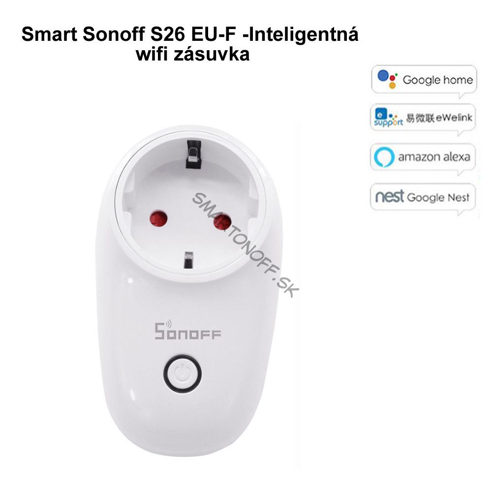 Inteligentá zásuvka smart Sonoff S26 podporuje ovládanie hlasom pomocou Google Assistant, Google Home a Amazon Alexa. Podpora Apple HomeKit sa pripravuje.